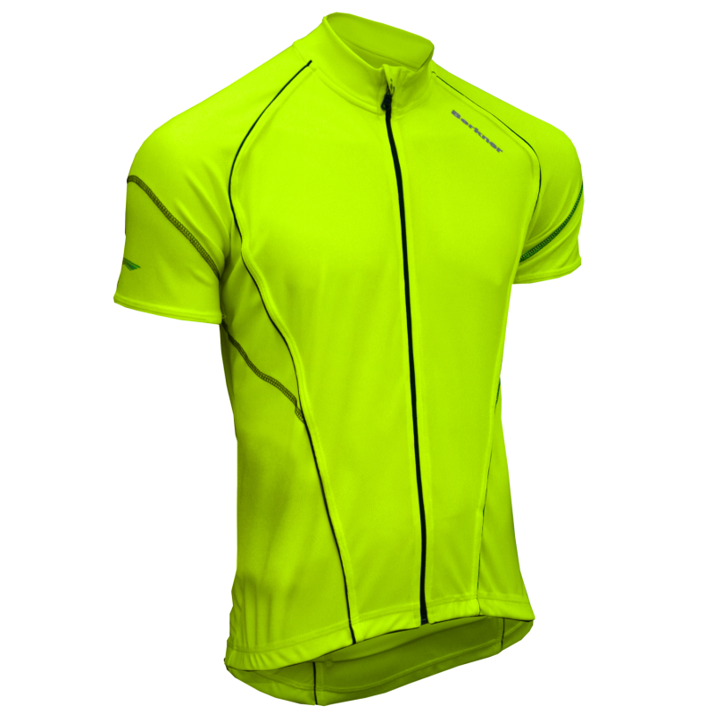 Herren-Fahrradhemb mit kurzen Ärmeln. Gefertigt aus dem atmungsaktiven SENSOR PIQUA Material. Eine entsprechende Materialstruktur unterstützt das Abführen von Feuchtigkeit nach außen, was das Auskühlen verhindert. Das flexible Material passt sich dem Körper an und verleiht ein Gefühl von Komfort. Ein entsprechender Schnitt und farbige Borten mit Nähten unterstreichen die männliche Figur. Flache Nähte verhindern Abschürfungen. Das Hemd wird mit einem Reißverschluss zugezogen, dessen Schieber sich nach dem Zuziehen in einer speziellen Tasche versteckt, die das Ankratzen des Halses verhindert. Ärmel mit Reflektorelementen. Im unteren Rückenbereich befinden sich 4 Taschen. Eine mit Reißverschluss, drei mit einem Gummiband. Rutschfeste Bänder entlang des unteren Hemdumfangs verhindern das Verrutschen während der Fahrt. Reflektorelemente vorne und hinten erhöhen die Sicherheit auf der Straße. Für warme Tage bestimmt.
