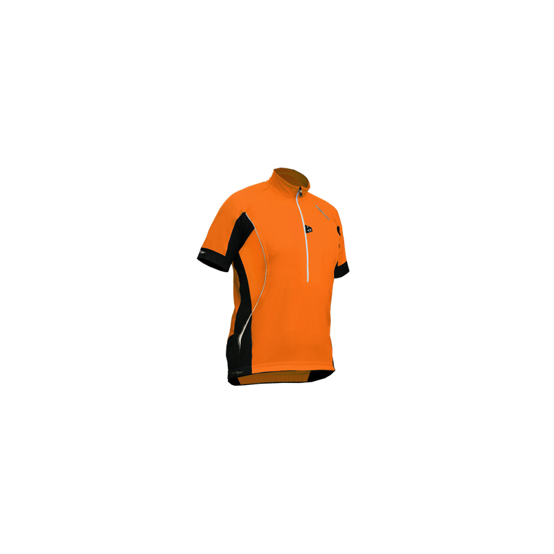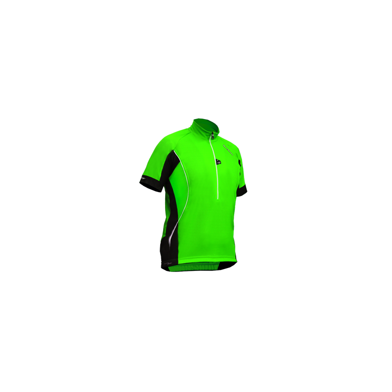 The men's cycling shirt with short sleeves was made of soft and pleasant to the touch SENSOR SENSOR PIQUA fabric with SILVER ION PROTECTION (silver ions eliminate the odors). The special fabric structure helps to thermoregulate and drain the excess of perspiration to protect body from cold. Around the armpits there are elastic ventilation insets to maximize air circulation. It's well-fitting and it doesn't constrain movements. A slim-fit cut and trimmings compliment a masculine figure. Flat seams prevent skin irritations. At the front, there is a one third length zipper. After zipping up the pull-tab hides in a special pocket to prevent neck irritation. At the back there are two pockets and one zippered pocket. The pull-tab hangers allow you to easily zip up and unzip the shirt even with gloves on. On the chest, next to the zipper, there is a glasses holder. At the bottom there is microfibre for cleaning the glasses. HIGH VISIBILITY reflective elements located at the front, back and sleeves add high visibility whilst on the road. Designed for warm days.
