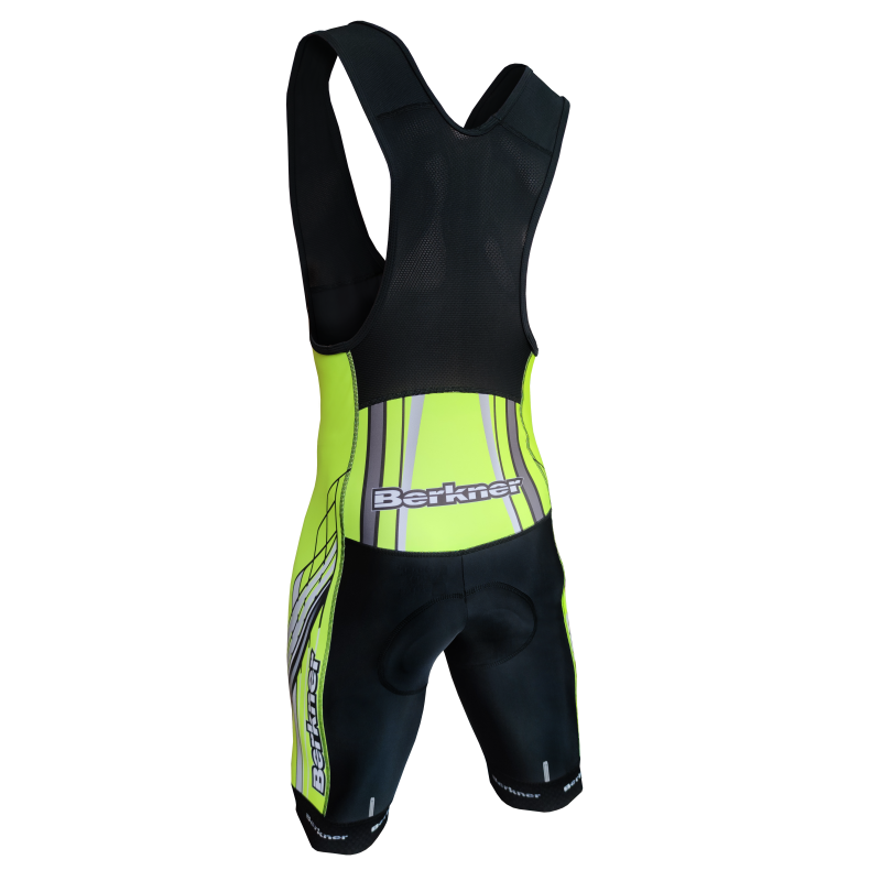 Cycling shorts were made of breathable ENERGY 190 fabric. Fabric texture helps to drain the excess of perspiration to protect body from cold. Breathable elastic mesh braces keep the shorts in place while cycling. One of the best ergonomic protective insert GEL pad 4D was used in crotch. A women's version is also available. Anatomically matched, made in 3D technology provides total freedom of movement, perfectly absorbs shock and protects against abrasion. Properly selected structures of materials improve comfort, protect and ventilate. In areas exposed to mechanical damage density and thickness of the foams are higher. The cushioning gel was also used. It helps to maintain and stimulate blood circulation at the critical points in contact, making it a perfect fit for long distance cycling. For better air circulation and moisture management, perforated foam and perforated gel were used. Modern polyurethane open cell foam (MEMORY FOAM) provides more balanced and even weight distribution, excellent shock absorbing properties, and good heat dispersion to reduce hot spots and friction. Specific external duct system, Clima Vent helps remove excess moisture, for comfort, even during intense exercise. Modern technologies of fibers and materials help to maintain the right temperature, climate, and natural levels of bacteria on the skin. The fabric in contact with the body contains silver ions, provides high hygiene and lack of unpleasant odor. There are prints (bright fluo dyes were used) on the leg sides. Stretchy shorts fit the body giving the feeling of comfort. There is anti-skidding elastic around the trouser-leg hem. Flat seams prevent skin irritations. Reflective elements located at the front and back add high visibility whilst on the road. Designed for warm days.